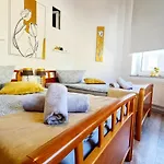 La cocina completa, equipada сon servicio de tetera/cafetera y hervidor eléctrico, nevera y cristalería, es perfecta para preparar comidas. La parada de autobús más cercana a la propiedad es Lehmbruck-Museum, a alrededor de 5 minutos a pie.